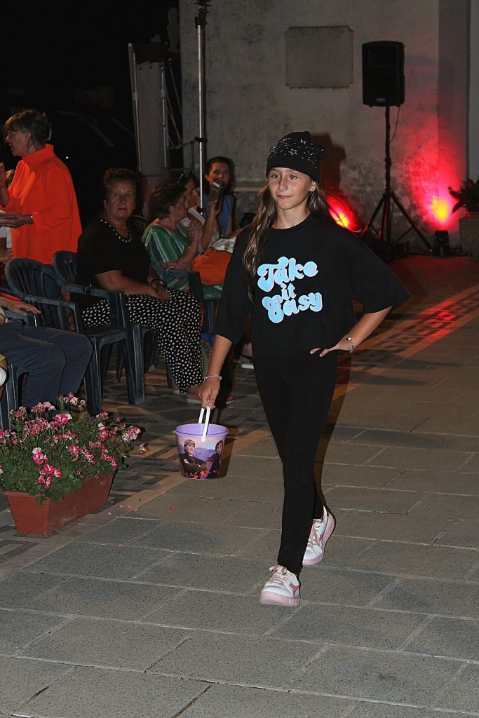 L’evento intitolato “Danza e Moda sotto le Stelle” ha visto protagonisti, nella passerella della piazza principale davanti alla chiesa, il negozio Birba Sottomarina di Isabella, Giorgia e Marina Mantovani, che hanno presentato le prossime collezioni Autunno-Inverno per bambini dagli 0 ai 16 anni, e la Cartolibreria Lina di Taglio di Po, di Caterina Milani, che ha proposto la bellissima nuova collezione di zaini per la scuola firmati Seven ed Invicta, indossati dai loro piccoli clienti: Matilde, Nicolas, Giorgia, Vittoria, Alberto, Elisa, Matilde, Emma, Rachele, Vittoria, Marta, Giulia, Giorgia.
